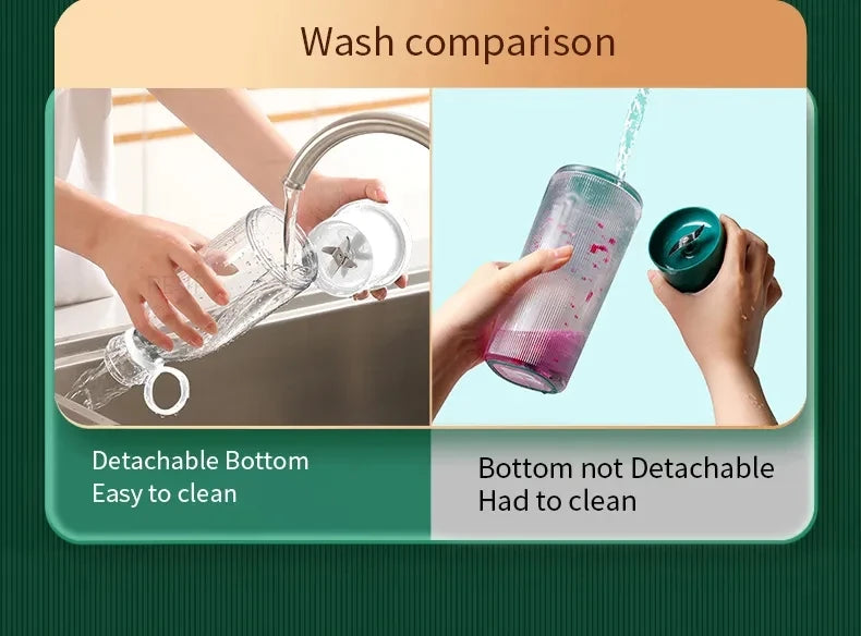 • Portable Design :The mini portable design of the juicer makes it easy to take on the go, allowing you to enjoy fresh juice anytime, anywhere.