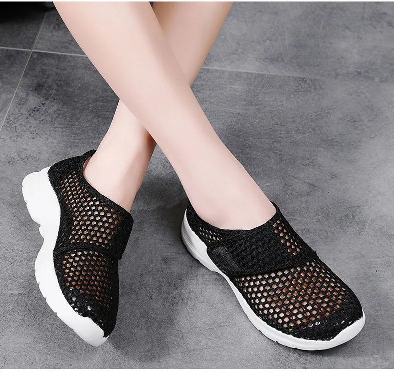 Women Mesh Shoes Summer Sports Black Outdoor Comfortable Loafers Monk Sneakers Girls For Walking Flats Mother Gift