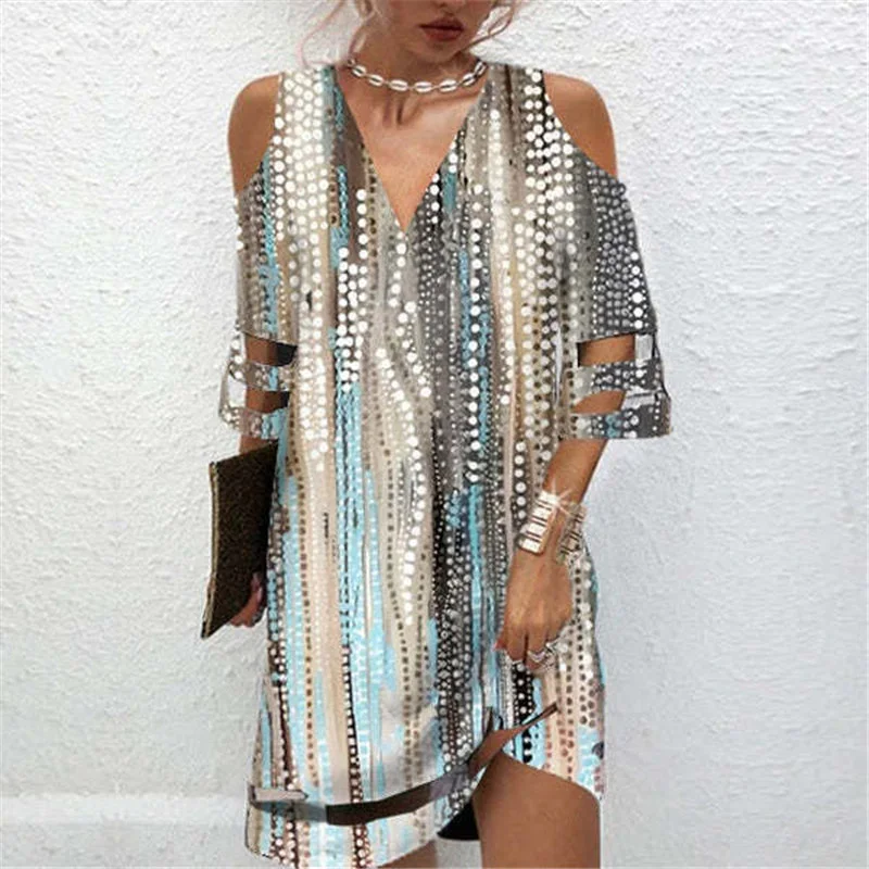 Women Sexy Off Shoulder Mesh Patchwork Elegant Party Dresses Summer Fashion Printed V Neck Half Sleeve Loose Midi Dress Vestidos