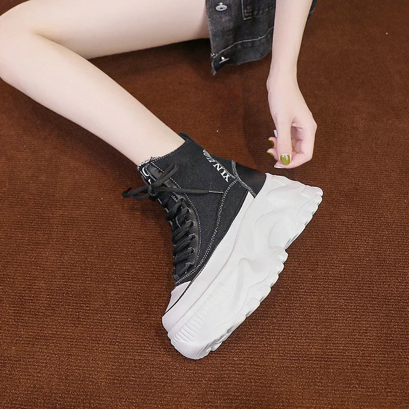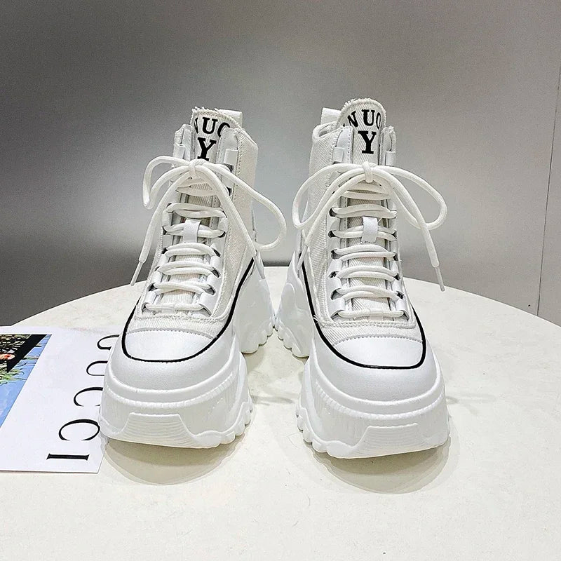 Women Sneakers High Top Platform Breathable Leather Shoes 2023 Autumn Ladies Wedges Casual Shoes For Woman Sports Dad Shoes 8CM