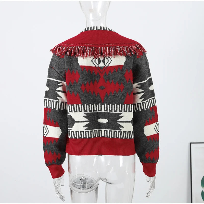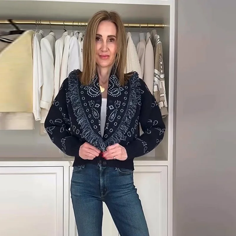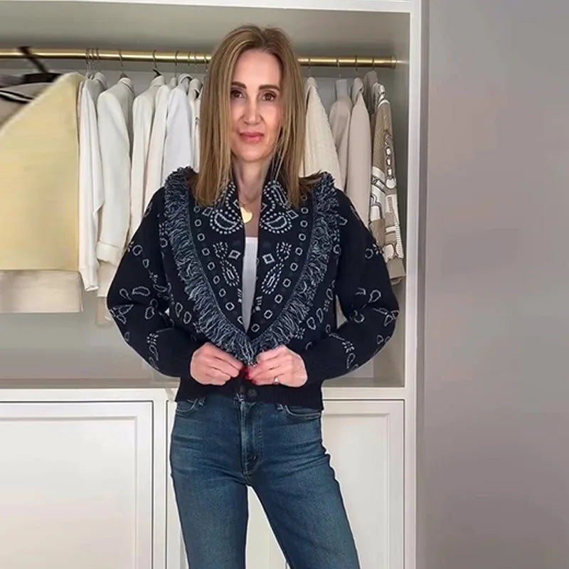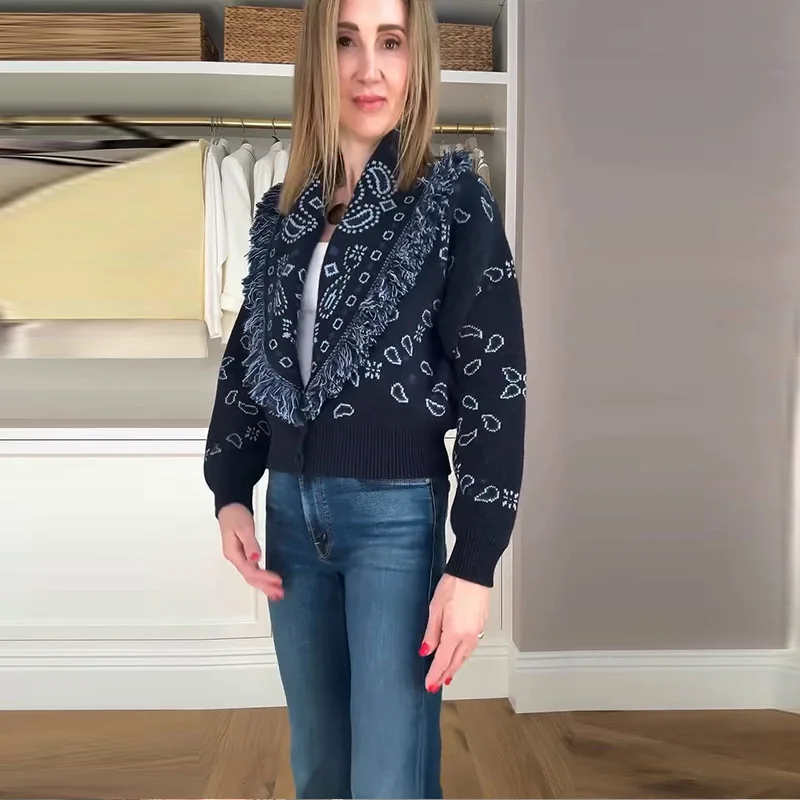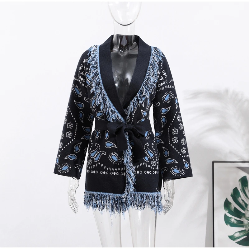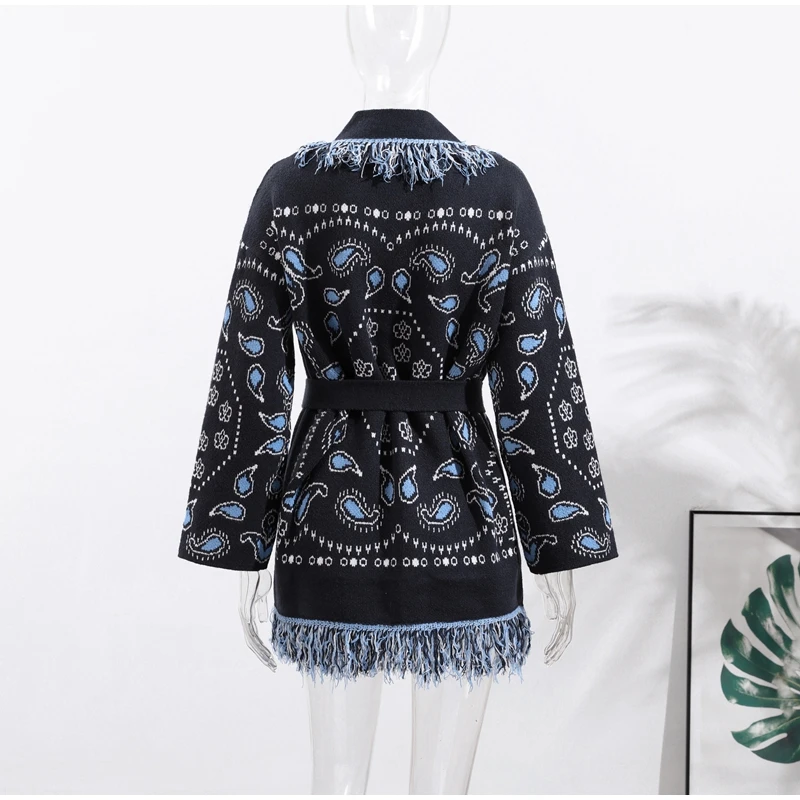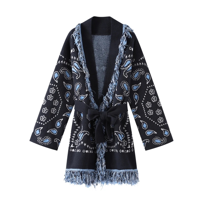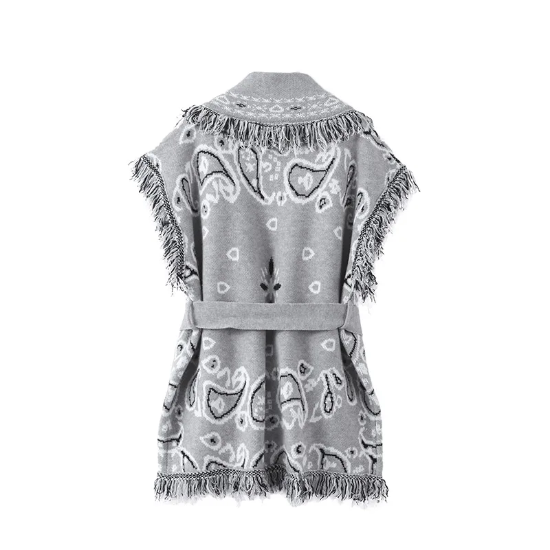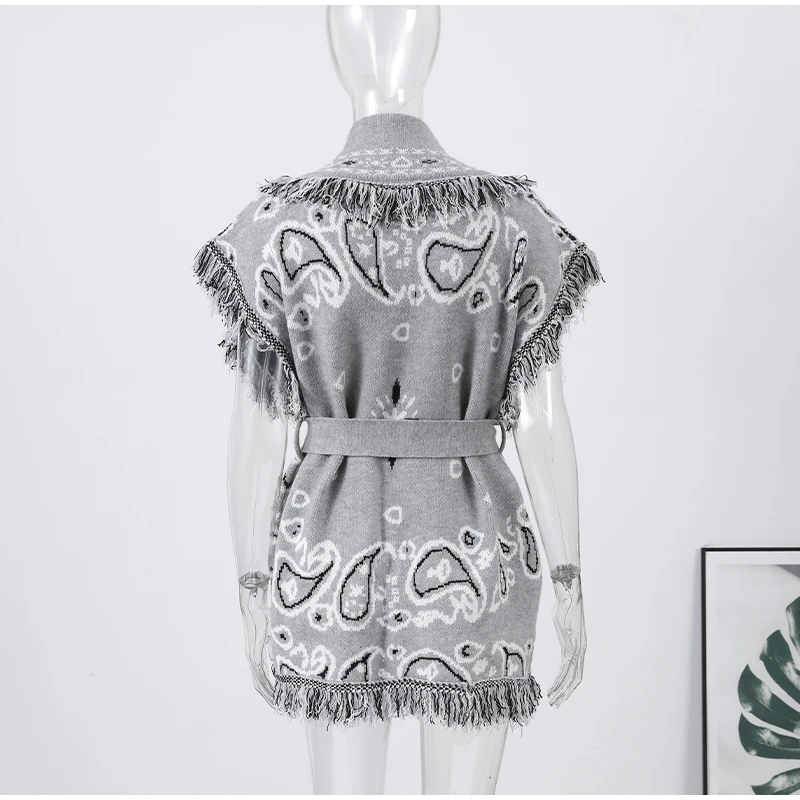 Model Number: Women's Print Fringe Knitted Vest Coat