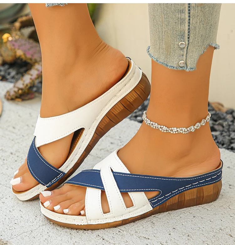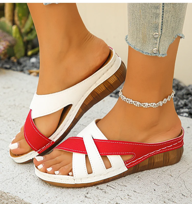 Women's Sandals New Wedges Heels Sandals Summer Shoes Woman Mix Color Summer Slippers Sandalias Mujer Luxury Heeled Footwear