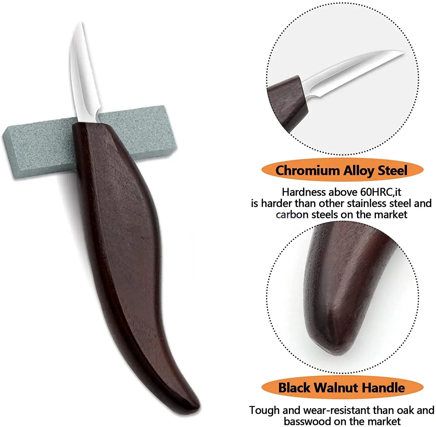 ⭐️ ERGONOMIC HANDLE:The handles are made of black walnut, the handle conforms to the ergonomic design and can be carved comfortably for a long time without hand fatigue.