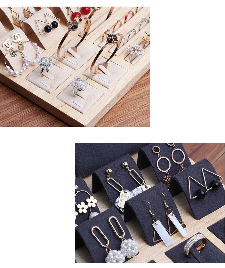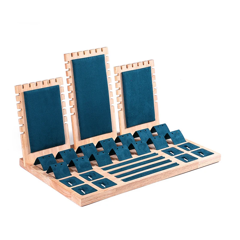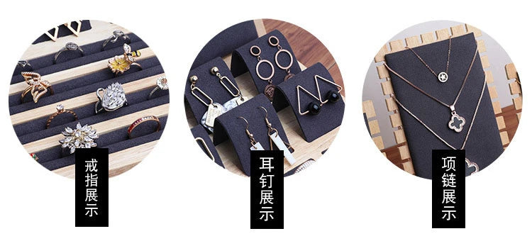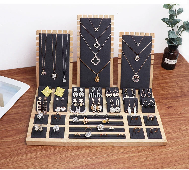 Wood Set Jewelry Counter Display Stand Necklace Pendant Holder Earring Ring Display Tray Props High-Capacity 39*25Cm