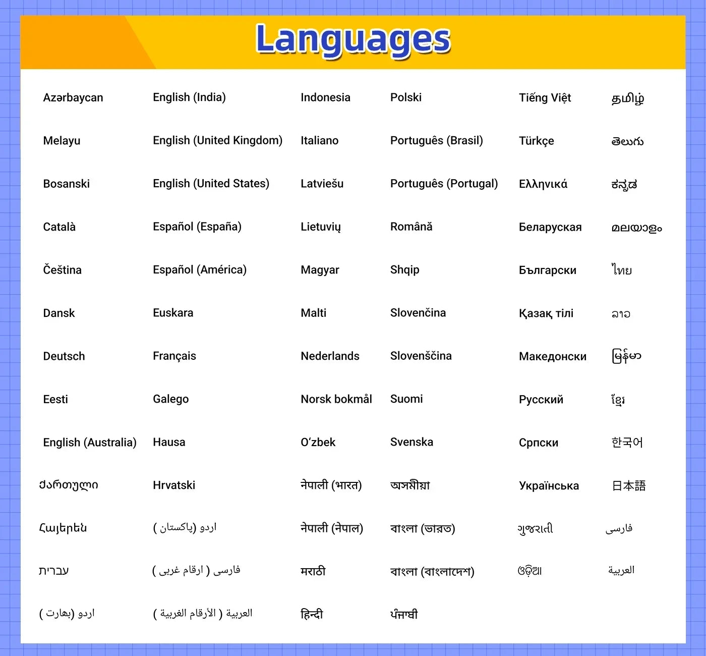 Language: Arabic,Polish,German,Russian,French,Korean,Norwegian,Portuguese,Japanese,Turkish,Spanish,Italian,English,English,Russian,German,French,Spanish,Polish,Portuguese,Italian,Turkish,Norwegian,Korean,Japanese,Arabic