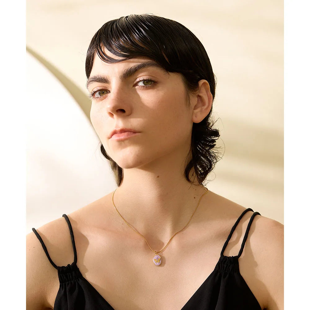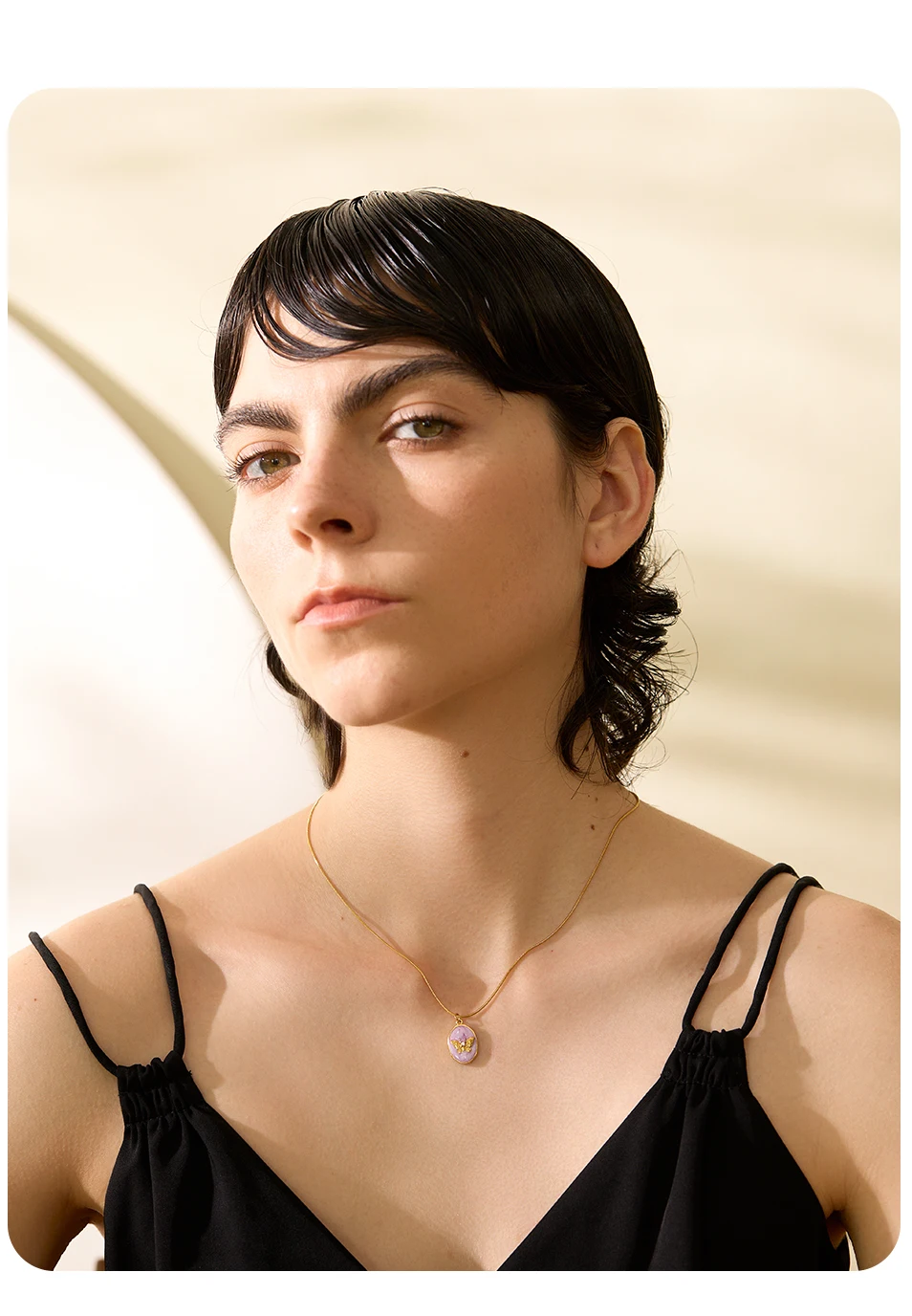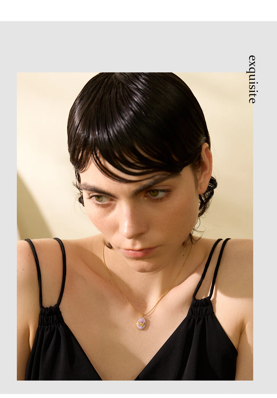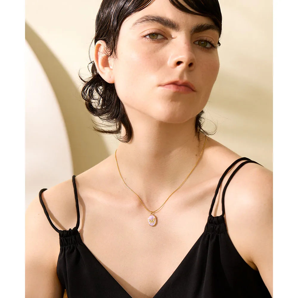 Yhpup Pink Enamel Butterfly Gilding Geometric Pendant Stainless Steel Collar Fashion Necklace for Women Korean Chic Jewelry Gift